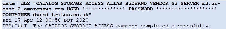This will be done by setting up a DB2 Storage Access Alias in a local DB2 instance (local meaning in the local data centre, not in AWS) which will enable the usage of the DB2REMOTE option in a DB2 BACKUP commands.